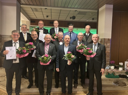 In seiner Begrüßung hieß Olaf Robitzsch zahlreiche Ehrengäste willkommen, darunter der 2. Stellvertretende Bürgermeister Achim Busch , Vertreter des Kreischorverbandes sowie die Ehrenmitglieder des Vereins – allen voran Ehrenchorleiter Godehard Gerlach, der den Chor über 36 Jahre geleitet hatte, und Ehrenvorsitzender Johannes Wucherpfennig. Beide wurden für ihre jahrzehntelangen Verdienste gewürdigt.